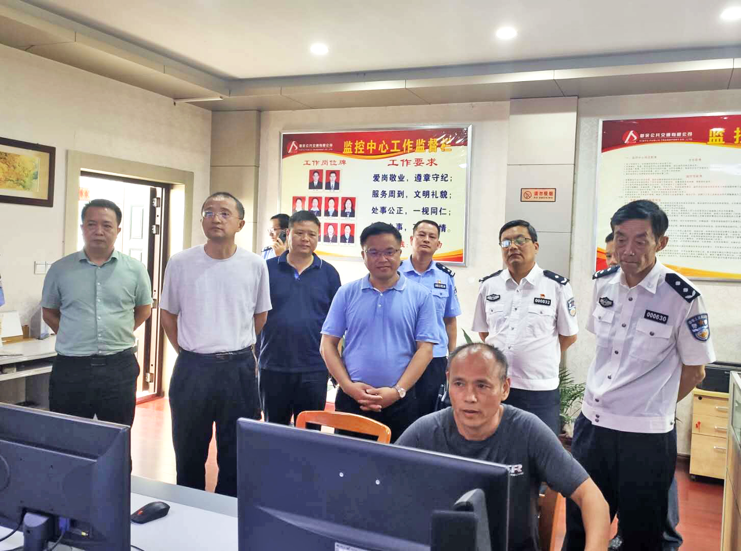 7月20日,省公安廳專員朱洪民、潘冰、督察總隊邱多晨一行深入新余公交督導(dǎo)公共場所安全防護(hù)設(shè)施建設(shè)和安全隱